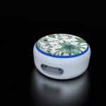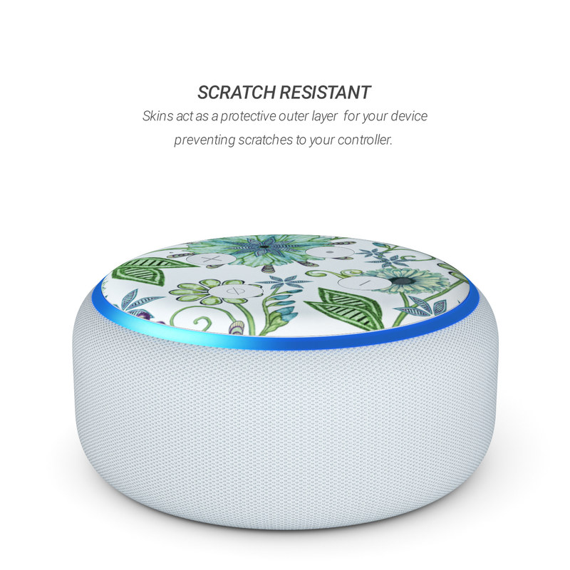 iStyles Amazon Echo Dot 3rd Gen Skin design of Green, Pattern, Flower, Botany, Plant, Leaf, Design, Wildflower, with white, green, blue colors, and tagged with patterns, flowers.