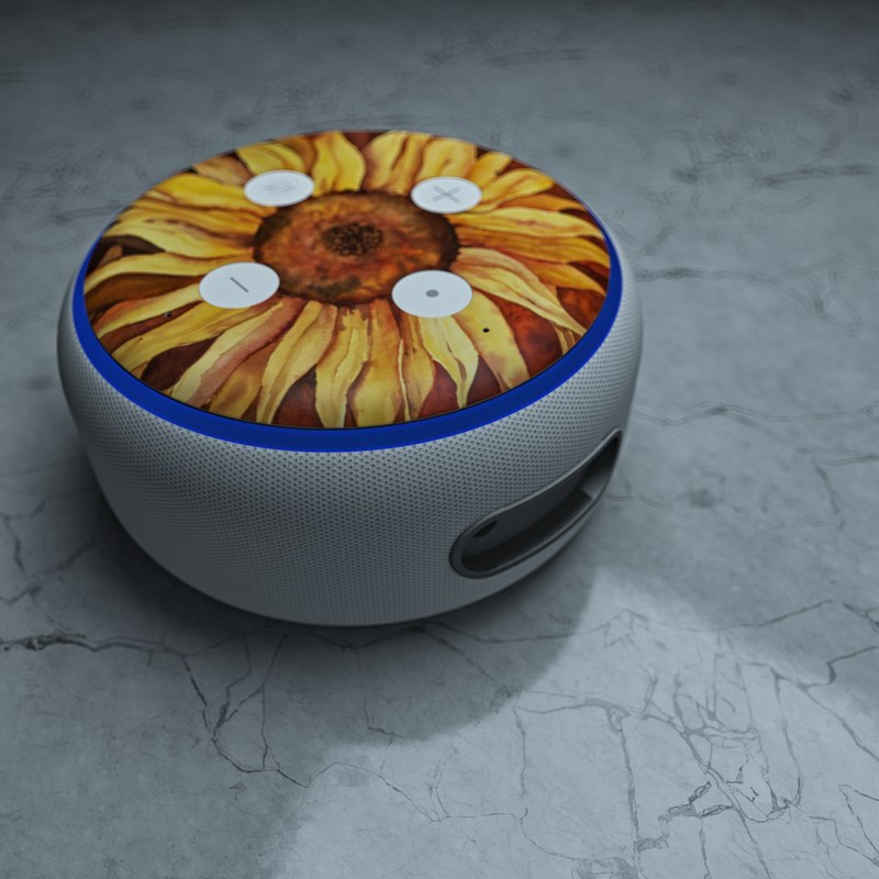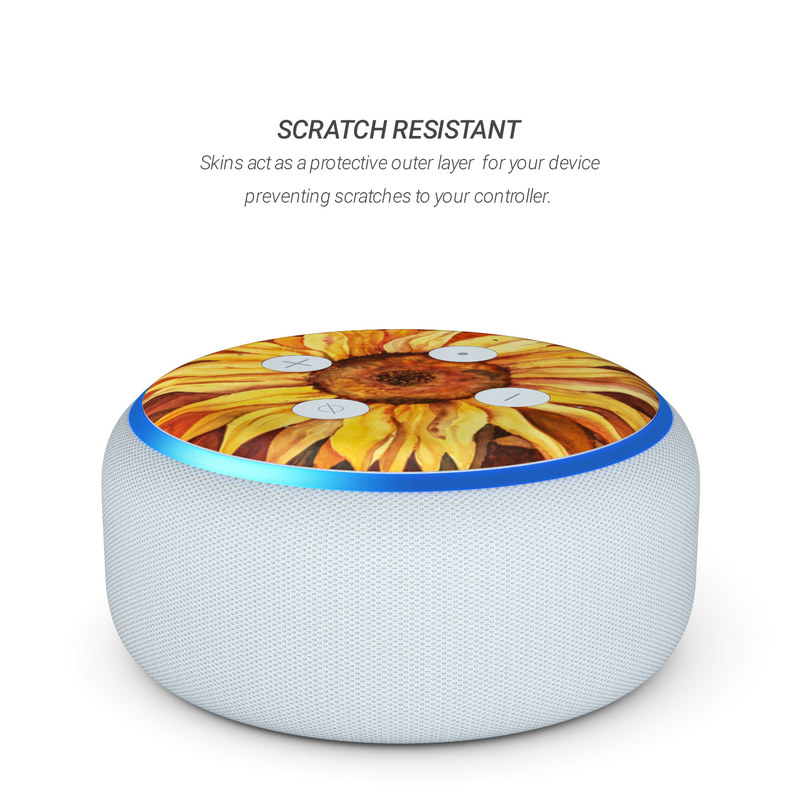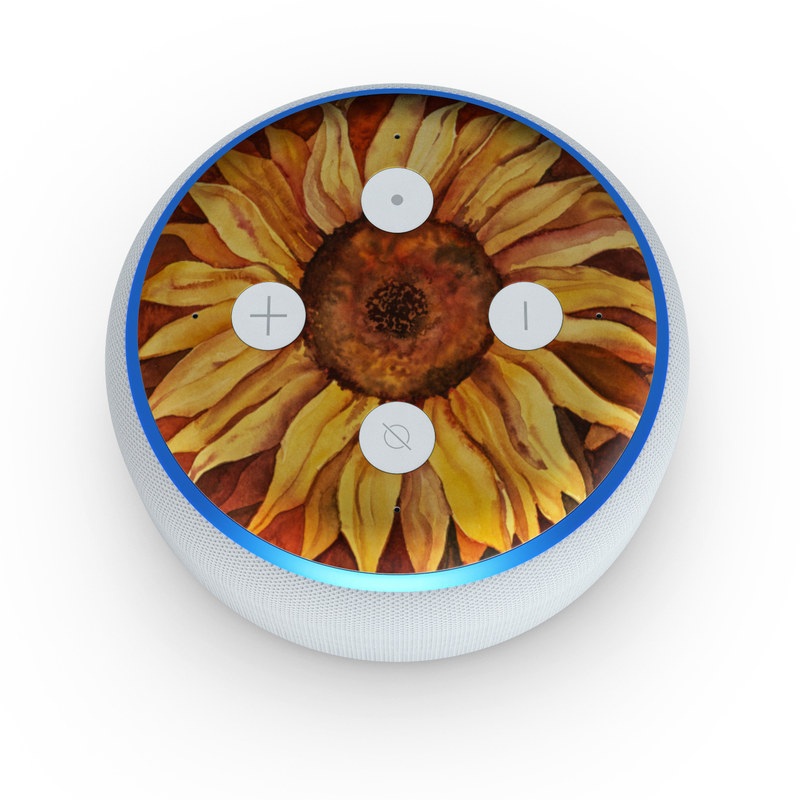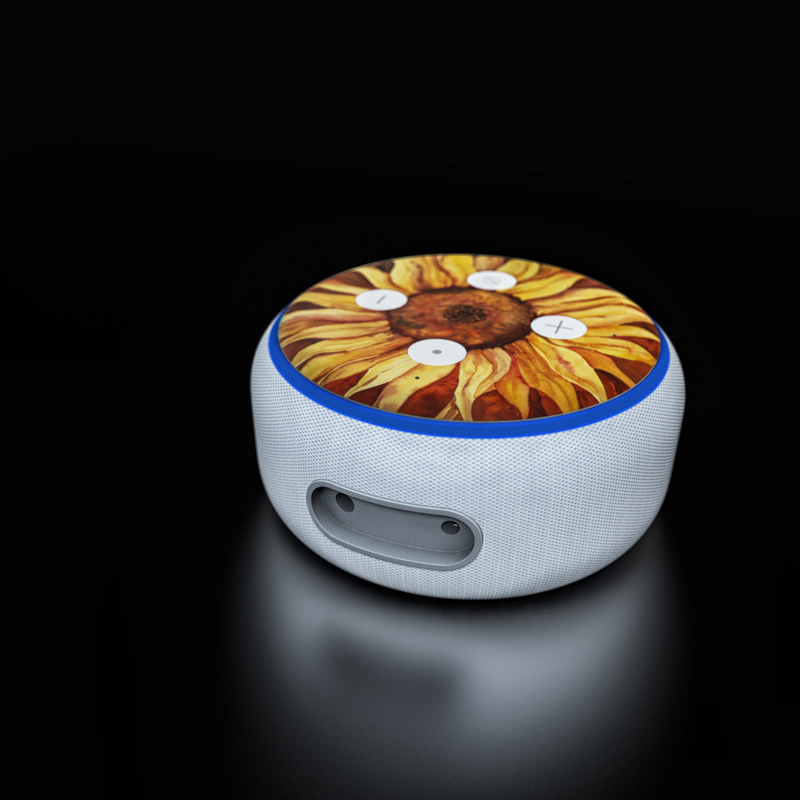 iStyles Amazon Echo Dot 3rd Gen Skin design of Sunflower, Flower, sunflower, Yellow, Painting, Plant, Petal, Still life photography, Flowering plant, Still life, with yellow, brown, orange colors, and tagged with flowers, fineart.