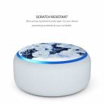 iStyles Amazon Echo Dot 3rd Gen Skin design of White, Flower, Cut flowers, Garden roses, Plant, Bouquet, Rose, Black-and-white, Rose family, Still life, with white, blue colors, and tagged with flowers, blue, bouquet, floral, flowers, watercolor.