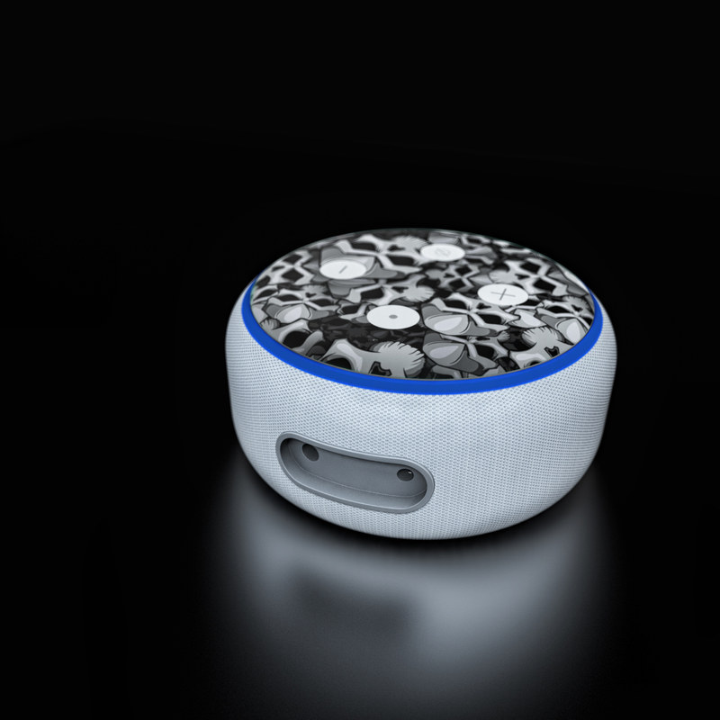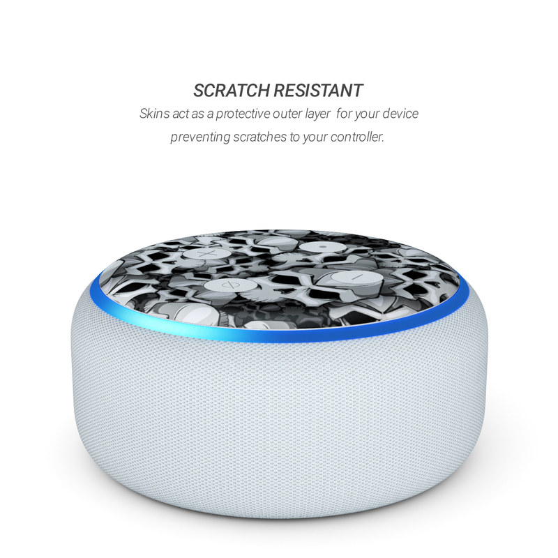 iStyles Amazon Echo Dot 3rd Gen Skin design of Pattern, Black-and-white, Monochrome, Ball, Football, Monochrome photography, Design, Font, Stock photography, Photography, with gray, black colors, and tagged with patterns, skulls.