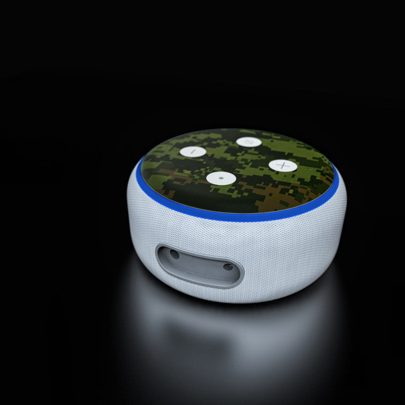 iStyles Amazon Echo Dot 3rd Gen Skin design of Military camouflage, Green, Pattern, Uniform, Camouflage, Clothing, Design, Leaf, Plant, with green, brown colors, and tagged with military, lookslike, patterns.