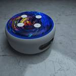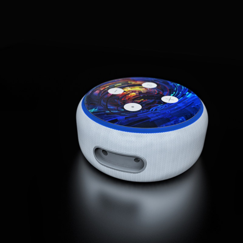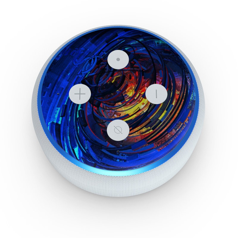 iStyles Amazon Echo Dot 3rd Gen Skin design of Blue, Water, Circle, Vortex, Electric blue, Wave, Liquid, Graphics, Pattern, Colorfulness, with blue, orange, yellow colors, and tagged with abstract.