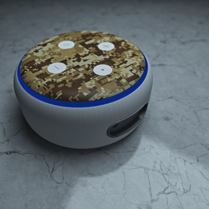 iStyles Amazon Echo Dot 3rd Gen Skin design of Military camouflage, Brown, Pattern, Camouflage, Wall, Beige, Design, Textile, Uniform, Flooring, with brown colors, and tagged with patterns, military, army, camo, camouflage, desert, digitalcamo, military.