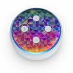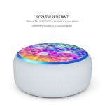 iStyles Amazon Echo Dot 3rd Gen Skin design of Pattern, Purple, Triangle, Violet, Magenta, Line, Design, Symmetry, Psychedelic art, with gray, purple, green, blue, pink colors, and tagged with patterns.