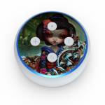 iStyles Amazon Echo Dot 3rd Gen Skin design of Cat, Felidae, Whiskers, Illustration, Art, Small to medium-sized cats, Doll, Kitten, Norwegian forest cat, Fawn, with black, white, red, brown, blue, green, pink, purple colors, and tagged with people, animals, flowers, nature, objects, fantasy, animals, cats, fantasy, kimono.