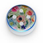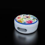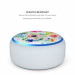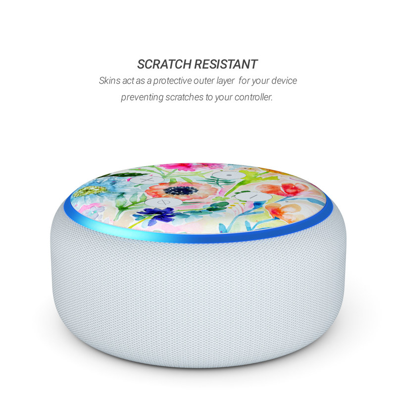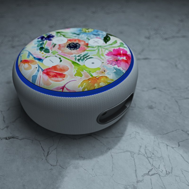 iStyles Amazon Echo Dot 3rd Gen Skin design of Flower, Watercolor paint, Plant, Flowering plant, Pattern, Floral design, Botany, Petal, Wildflower, Design, with green, pink, yellow, orange, blue, red, purple colors, and tagged with flowers, patterns, floral, flowers, garden, paint, painting, watercolor.