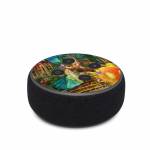 iStyles Amazon Echo Dot 3rd Gen Skin design of Mythology, Adventure game, World, Fictional character, Theatrical scenery, Art, with yellow, orange, blue, green, red, purple, white, black colors, and tagged with fantasy, animals, objects, urban.