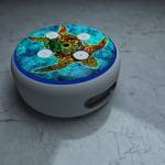 iStyles Amazon Echo Dot 3rd Gen Skin design of Sea turtle, Green sea turtle, Turtle, Hawksbill sea turtle, Tortoise, Reptile, Loggerhead sea turtle, Illustration, Art, Pattern, with blue, black, green, gray, red colors, and tagged with animals.