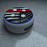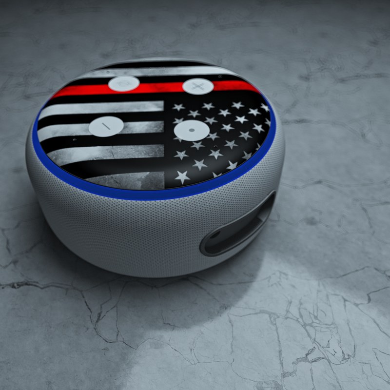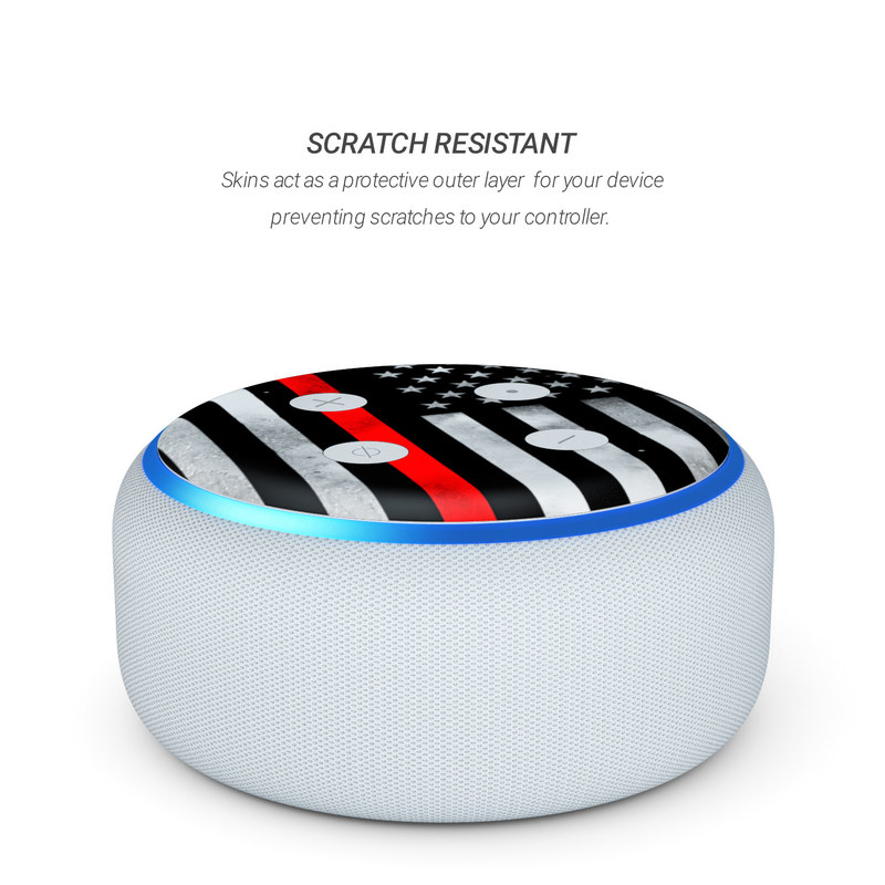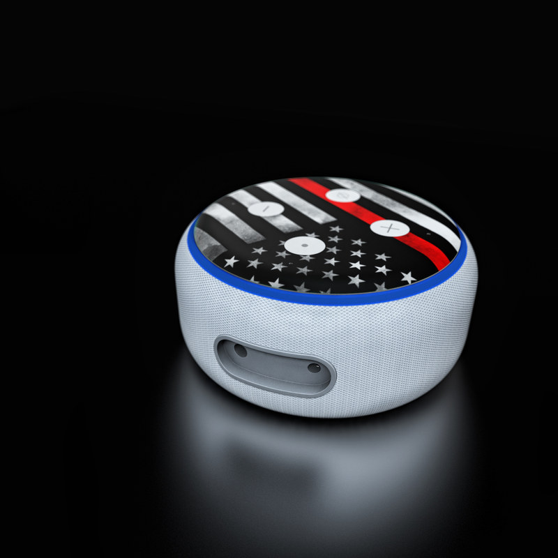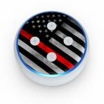 iStyles Amazon Echo Dot 3rd Gen Skin design of Flag of the united states, Flag, Line, Black-and-white, Pattern, Flag Day (USA), Veterans day, Independence day, Memorial day, with black, white, gray, red colors, and tagged with flags, signs, fire, firstresponder, flag, rescue, thinline.