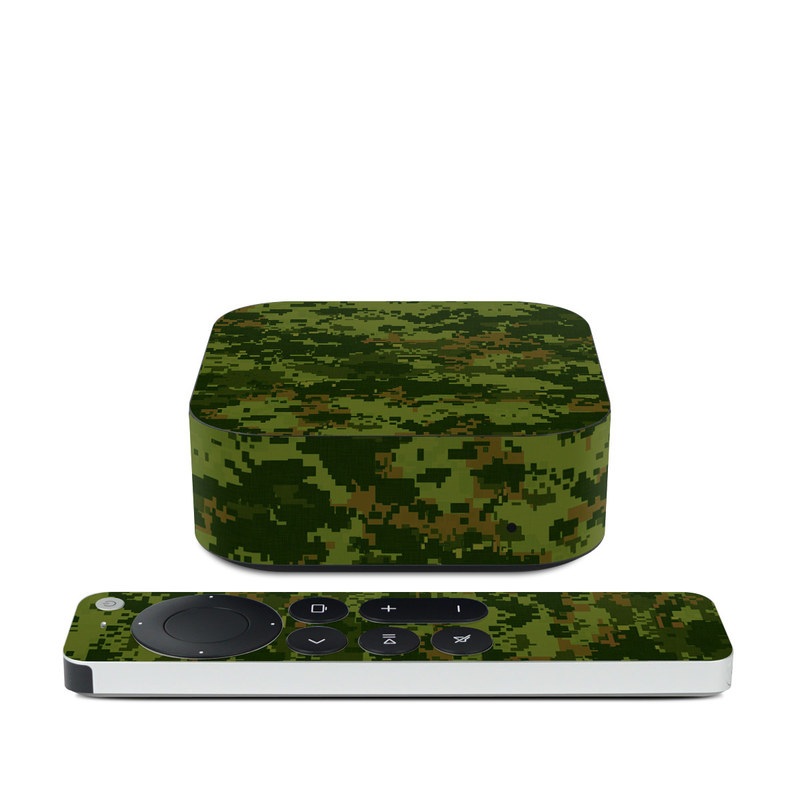 iStyles Apple TV 4K 2nd Gen Skin design of Military camouflage, Green, Pattern, Uniform, Camouflage, Clothing, Design, Leaf, Plant, with green, brown colors, and tagged with military, lookslike, patterns.