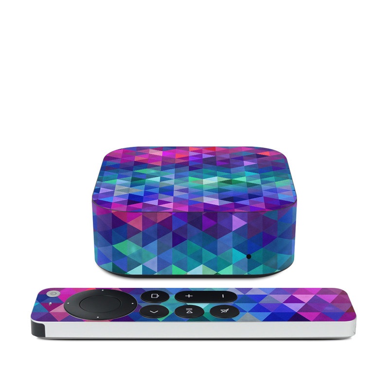 iStyles Apple TV 4K 2nd Gen Skin design of Purple, Violet, Pattern, Blue, Magenta, Triangle, Line, Design, Graphic design, Symmetry, with blue, purple, green, red, pink colors, and tagged with patterns.