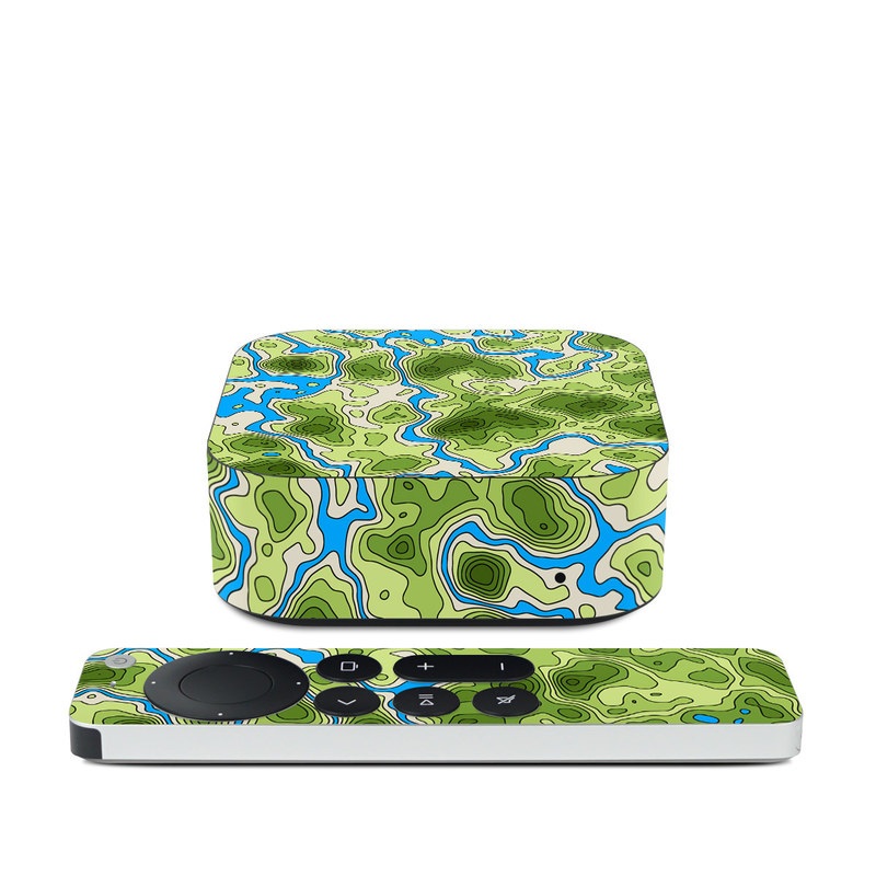 iStyles Apple TV 4K 2nd Gen Skin design of Botany, Azure, Organism, Vegetation, Aqua, Terrestrial plant, Symmetry, Electric blue, Pattern, Art, with green, blue colors, and tagged with patterns, geography, map, outdoors, topo, topographic, topography, travel.