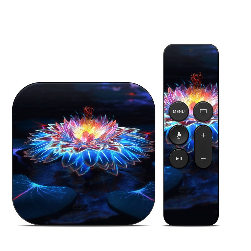 iStyles Apple TV HD, 4K 1st Gen Skin design of Water, Light, Fractal art, Organism, Electric blue, Aquatic plant, Darkness, Plant, Art, Space, with black, blue, gray colors, and tagged with flowers.
