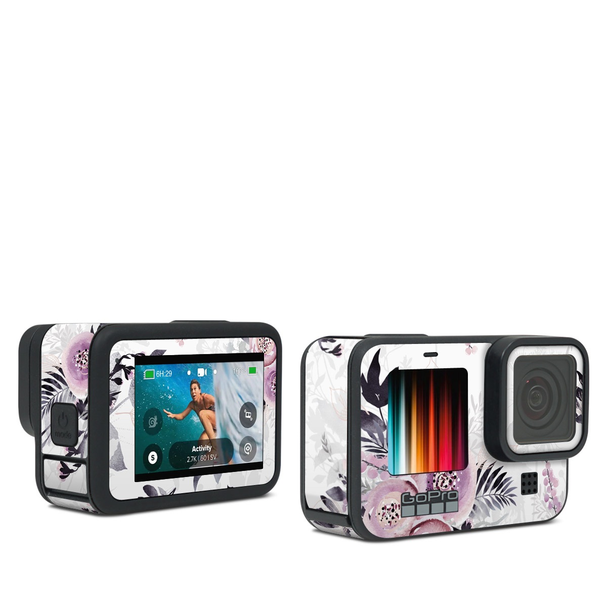 iStyles GoPro HERO Black Series Skin design of Pink, Pattern, Design, Floral design, Textile, Plant, Flower, Magenta, Petal, Wallpaper, with white, purple, pink, black, gray colors, and tagged with patterns, flowers, florals, flowers, pattern, purple, watercolor, white.