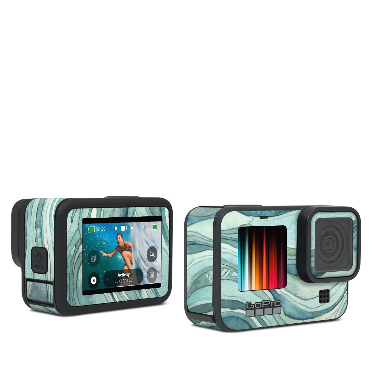 iStyles GoPro HERO Black Series Skin design of Aqua, Blue, Pattern, Turquoise, Teal, Water, Design, Line, Wave, Textile, with gray, blue colors, and tagged with patterns.