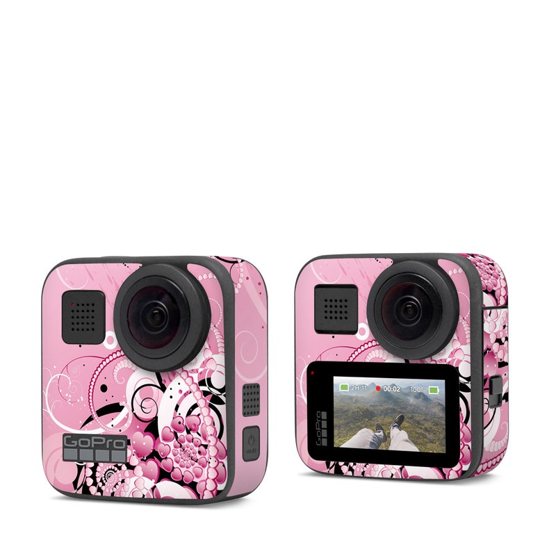 iStyles GoPro Max Skin design of Pink, Floral design, Graphic design, Text, Design, Flower Arranging, Pattern, Illustration, Flower, Floristry, with pink, gray, black, white, purple, red colors, and tagged with abstract, hearts.