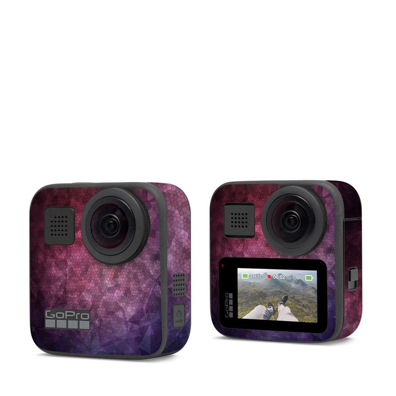 iStyles GoPro Max Skin design of Purple, Sky, Red, Violet, Pink, Pattern, Design, Triangle, Line, Magenta, with black, red, purple, pink, white colors, and tagged with patterns.
