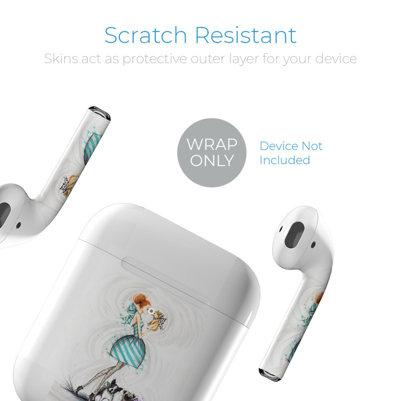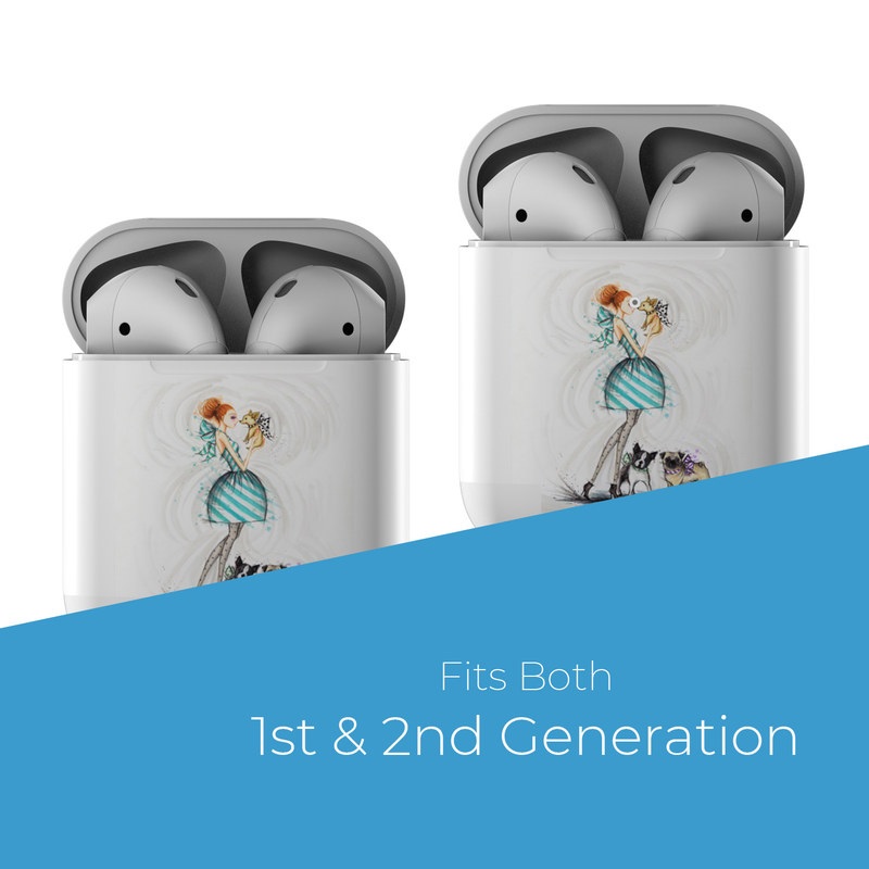 iStyles Apple AirPods Skin design of Illustration, Cartoon, Drawing, Art, Costume design, Fictional character, Fashion illustration, Sketch, with gray, black, white, blue, gray, yellow, brown colors, and tagged with people, fineart, animals, fashion, animals, bulldog, chihuahua, dogs, dresses, fashion, frenchbulldog, pug.