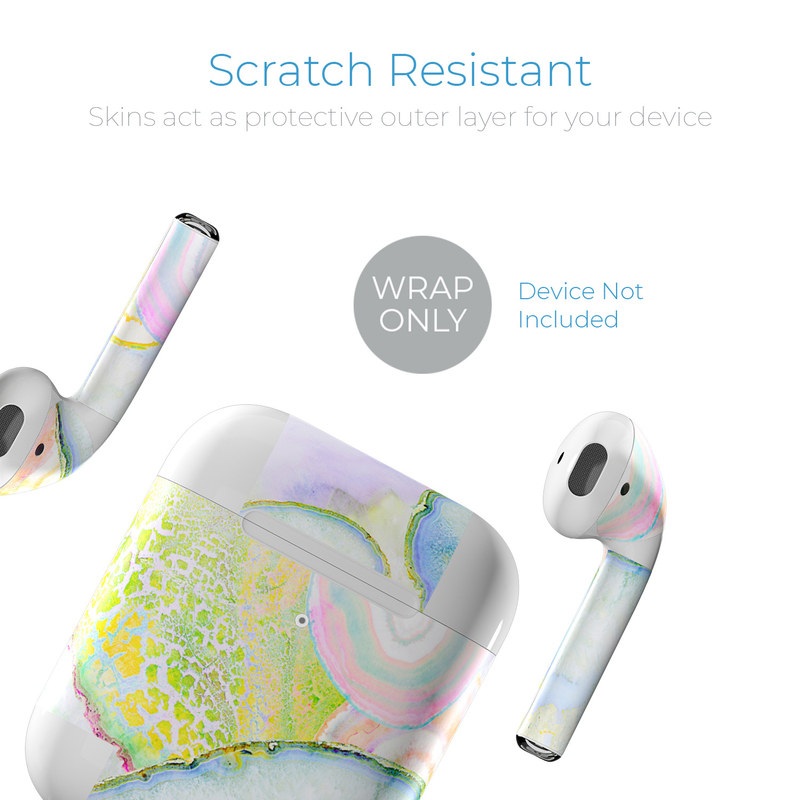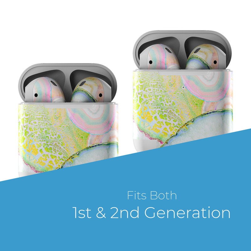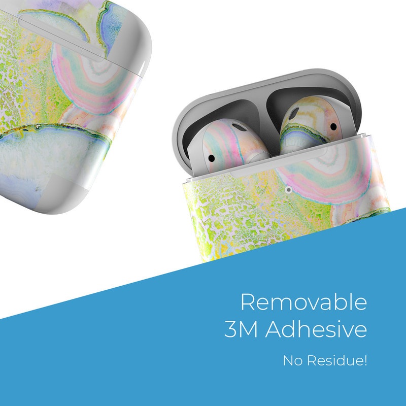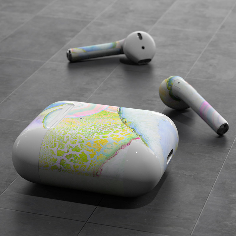 iStyles Apple AirPods Skin design of Watercolor paint, Illustration, Paint, Child art, Art, with blue, purple, green, yellow, pink colors, and tagged with abstract, nature, objects, agate, gems, nature, opal, rock, stone.