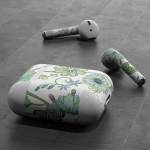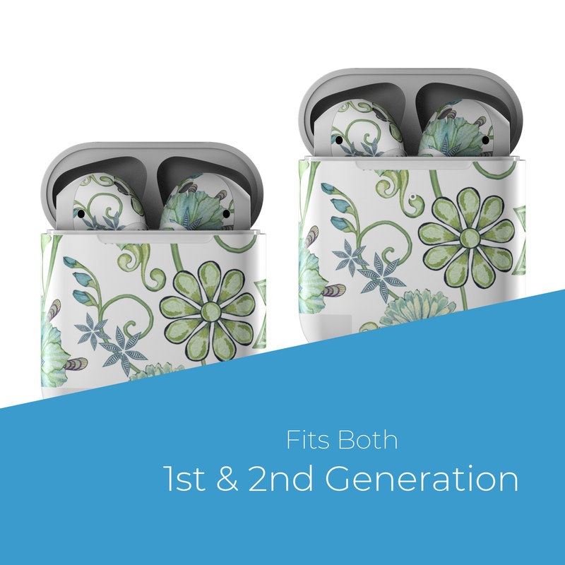 iStyles Apple AirPods Skin design of Green, Pattern, Flower, Botany, Plant, Leaf, Design, Wildflower, with white, green, blue colors, and tagged with patterns, flowers.