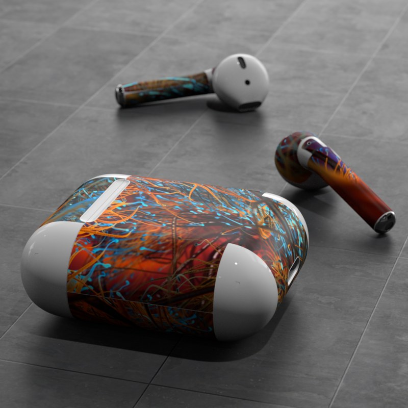 iStyles Apple AirPods Skin design of Orange, Tree, Electric blue, Organism, Fractal art, Plant, Art, Graphics, Space, Psychedelic art, with orange, blue, red, yellow, purple colors, and tagged with patterns.