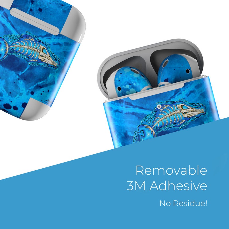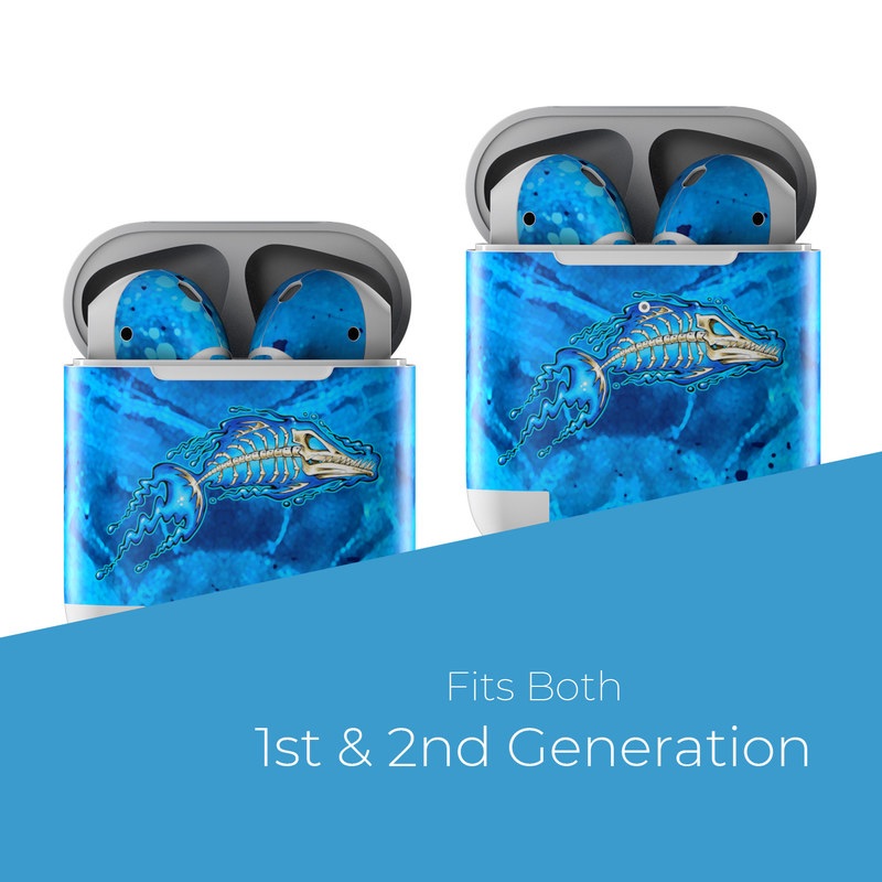 iStyles Apple AirPods Skin design of Blue, Water, Aqua, Electric blue, Illustration, Graphic design, Liquid, Graphics, Marine biology, Art, with blue, white colors, and tagged with skulls, animals.