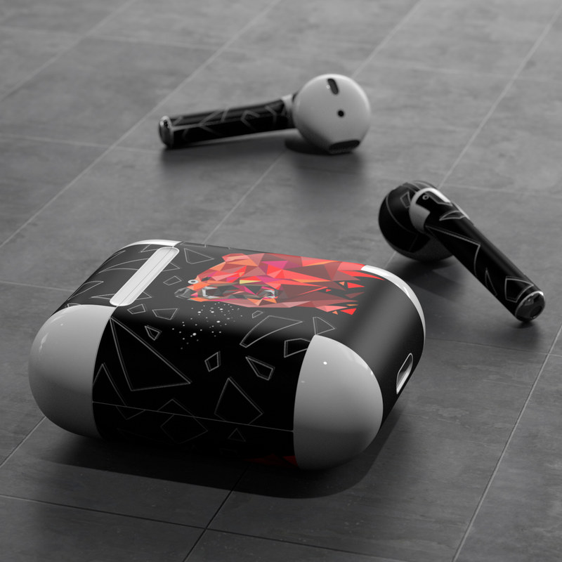 iStyles Apple AirPods Skin design of Graphic design, Triangle, Font, Illustration, Design, Art, Visual arts, Graphics, Pattern, Space, with black, red colors, and tagged with patterns, animals.