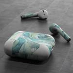 iStyles Apple AirPods Skin design of Rose, Garden roses, Blue, Flower, Rose family, Watercolor paint, Plant, Pattern, Rosa × centifolia, Blue rose, with blue, green colors, and tagged with patterns, flowers.