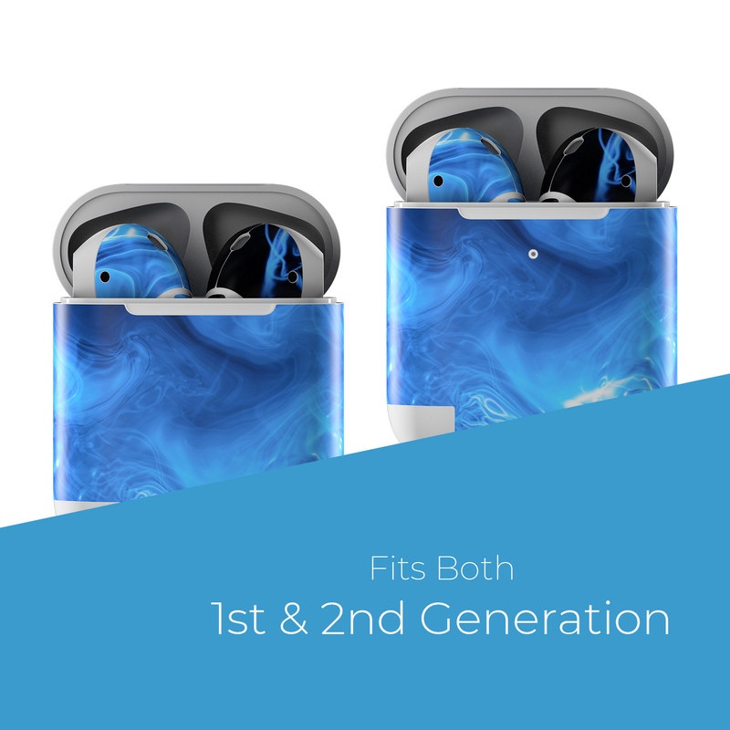 iStyles Apple AirPods Skin design of Blue, Water, Electric blue, Organism, Pattern, Smoke, Liquid, Art, with blue, black, purple colors, and tagged with patterns.