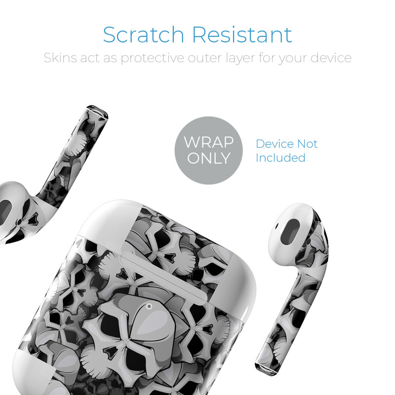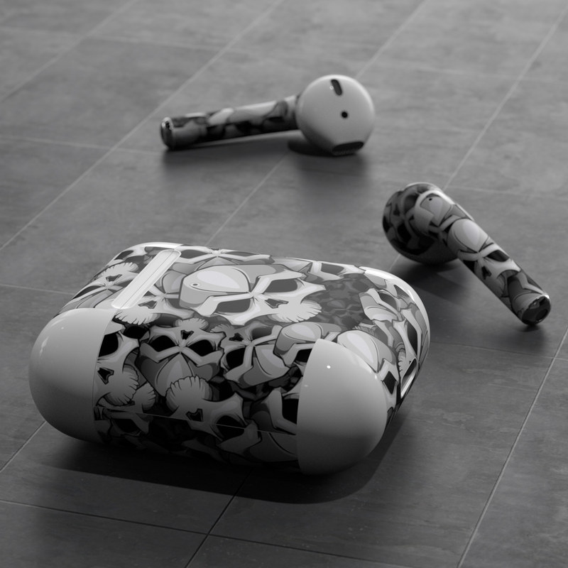 iStyles Apple AirPods Skin design of Pattern, Black-and-white, Monochrome, Ball, Football, Monochrome photography, Design, Font, Stock photography, Photography, with gray, black colors, and tagged with patterns, skulls.