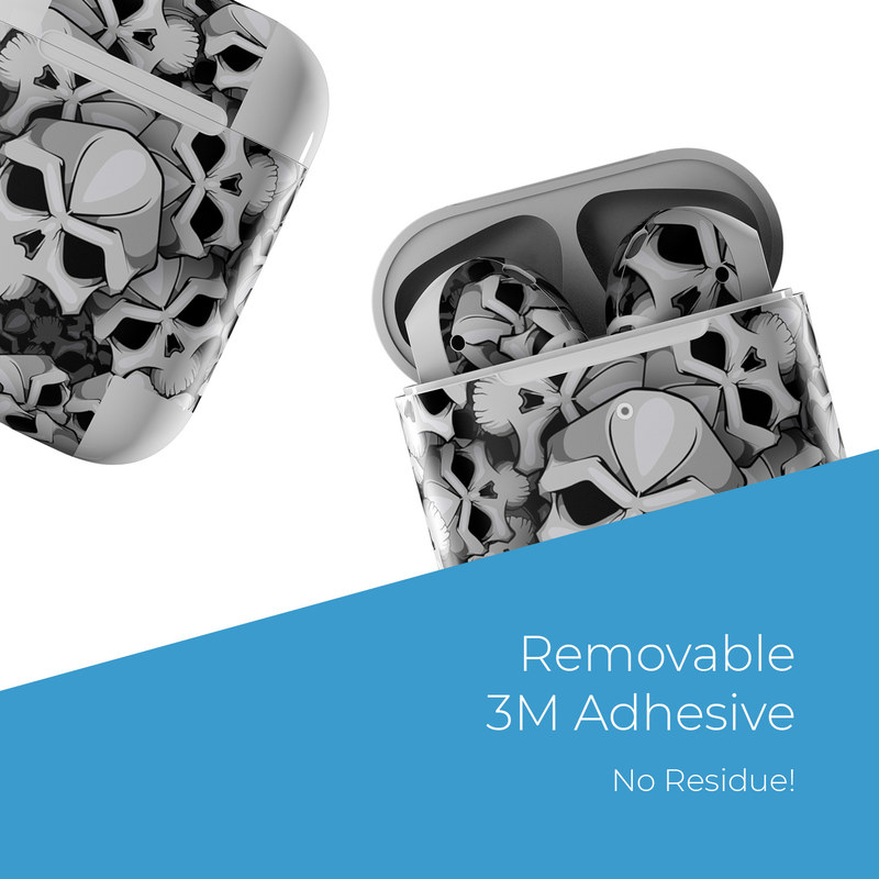 Each Skin covers your Apple AirPods, provides low profile protection with no bulk and helps protect from scratches. The unique weaved adhesive allows for fast, easy and accurate application, and goo-free removal.