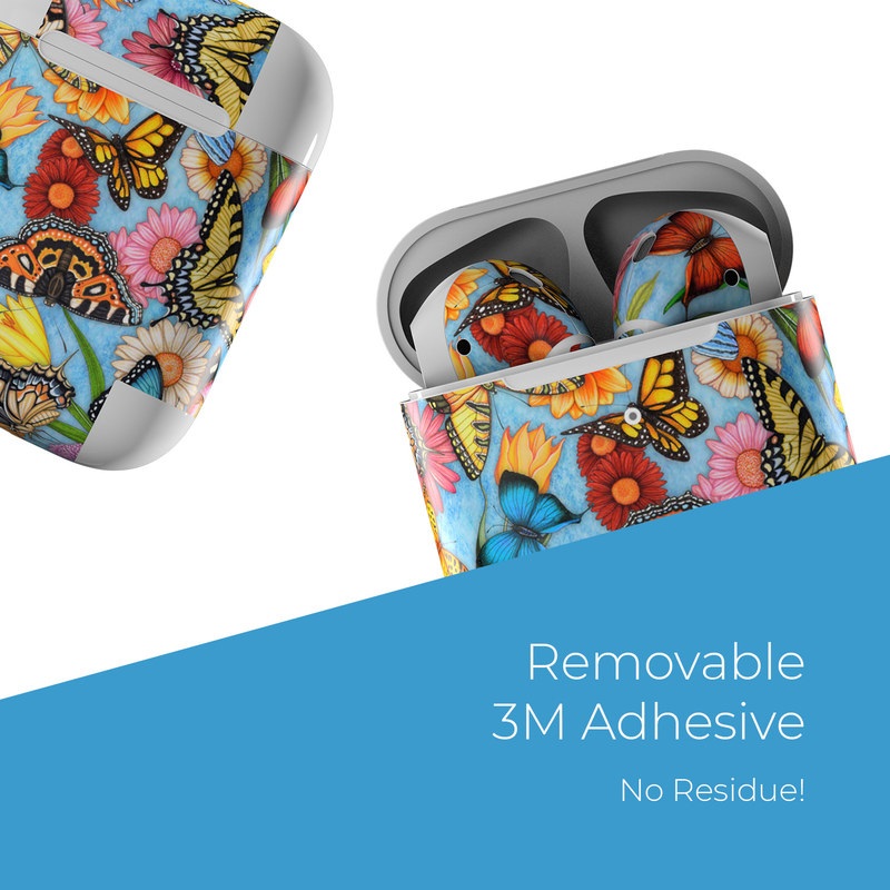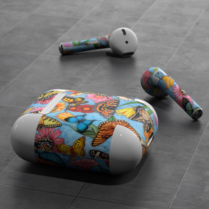 iStyles Apple AirPods Skin design of Cynthia (subgenus), Butterfly, Monarch butterfly, Moths and butterflies, Brush-footed butterfly, Pollinator, Insect, Pattern, Design, Organism, with blue, pink, orange, yellow, red colors, and tagged with flowers, patterns, animals.