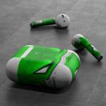 iStyles Apple AirPods Skin design of Green, Font, Animation, Logo, Graphics, Games, with green, white colors, and tagged with fantasy.