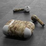 iStyles Apple AirPods Skin design of Military camouflage, Brown, Pattern, Camouflage, Wall, Beige, Design, Textile, Uniform, Flooring, with brown colors, and tagged with patterns, military, army, camo, camouflage, desert, digitalcamo, military.