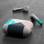 iStyles Apple AirPods Skin design of Blue, Turquoise, Aqua, Line, Triangle, Design, Material property, Graphic design, Pattern, Architecture, with black, white, brown, blue colors, and tagged with patterns, block, blocking, color, colorblock, geometric, shape, simple.