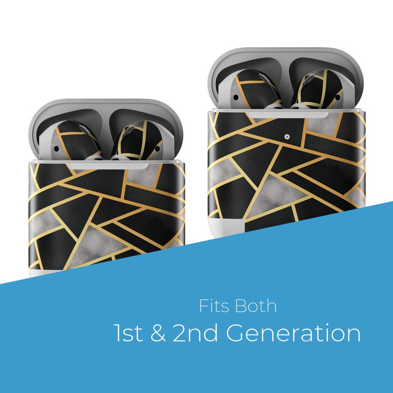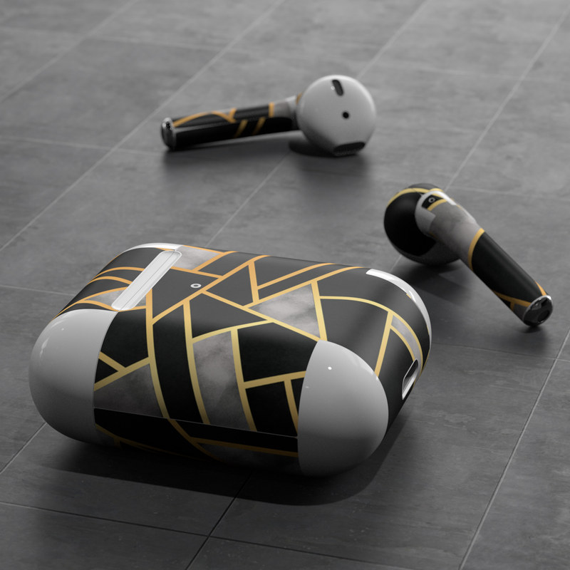 iStyles Apple AirPods Skin design of Pattern, Triangle, Yellow, Line, Tile, Floor, Design, Symmetry, Architecture, Flooring, with black, gray, yellow colors, and tagged with patterns.