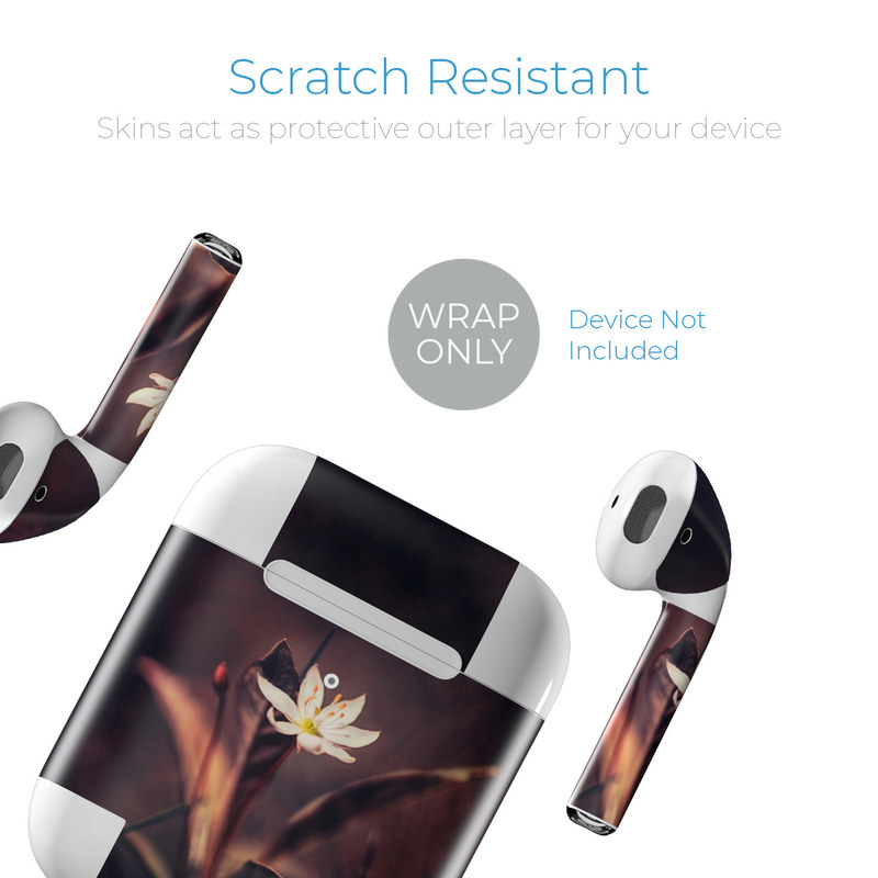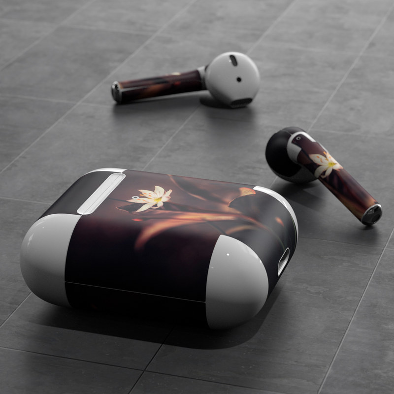 iStyles Apple AirPods Skin design of Flower, Yellow, Light, Plant, Sky, Still life photography, Wildflower, Petal, Darkness, Spring, with black, red colors, and tagged with nature, flowers.