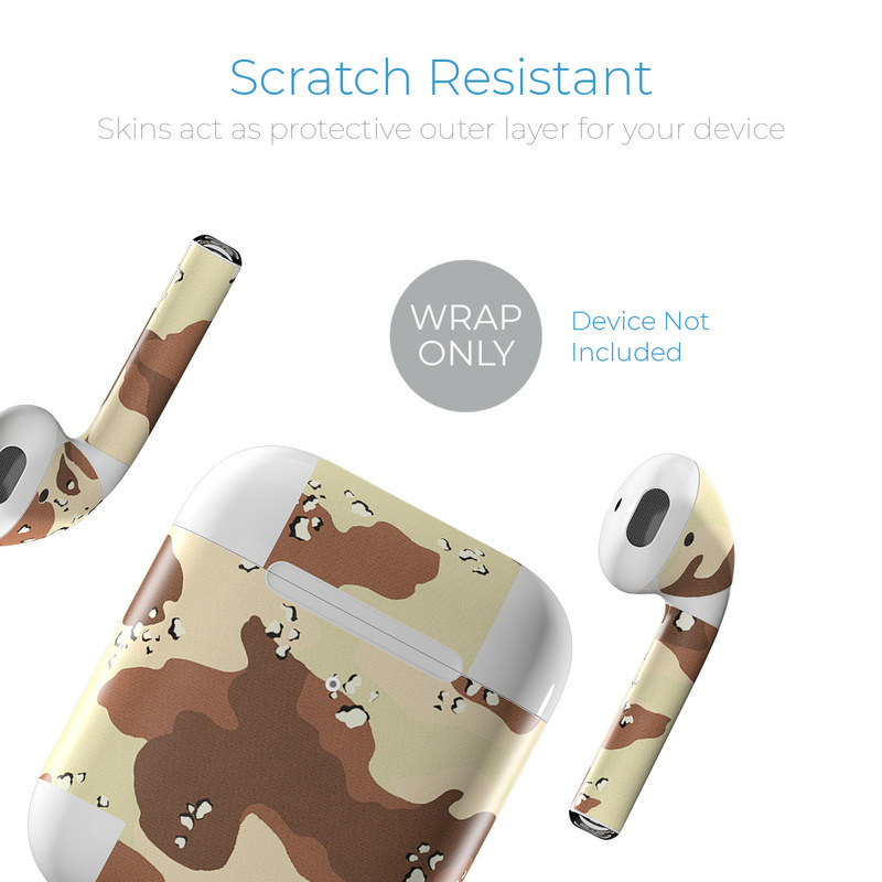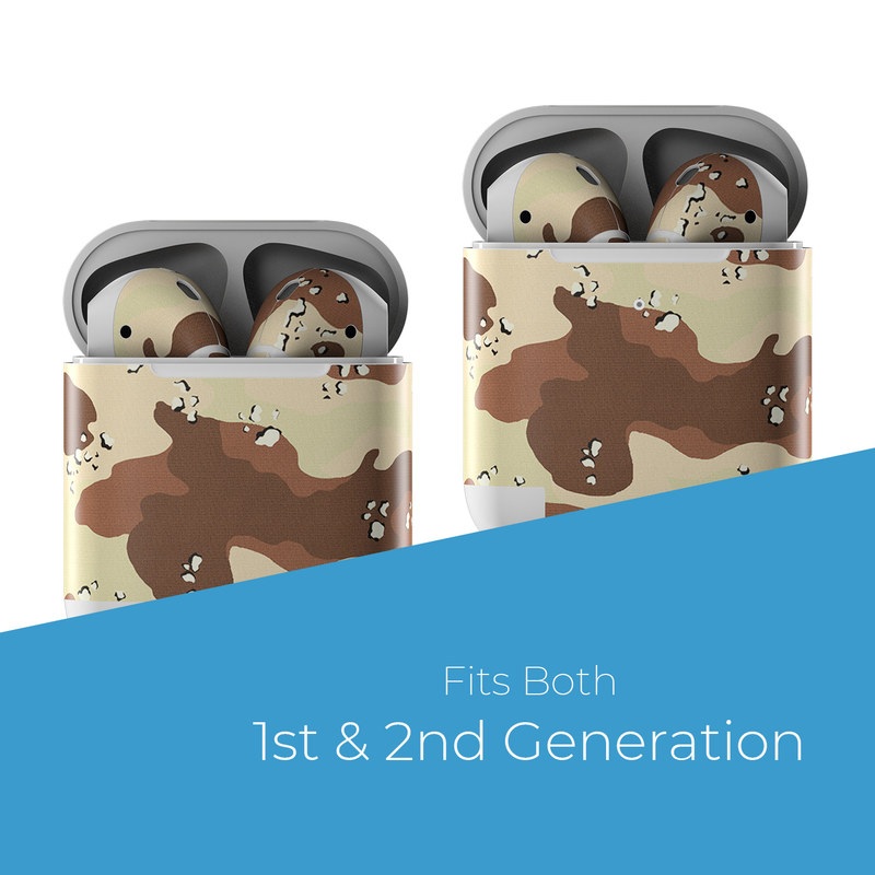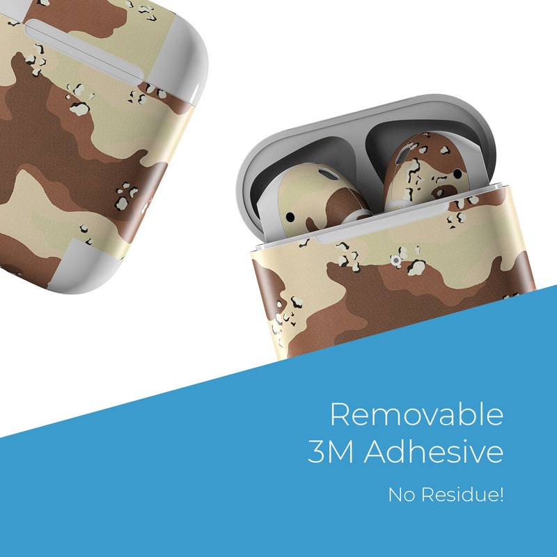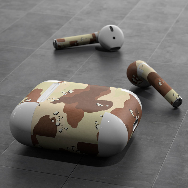 iStyles Apple AirPods Skin design of Military camouflage, Brown, Pattern, Design, Camouflage, Textile, Beige, Illustration, Uniform, Metal, with gray, red, black, green colors, and tagged with military, patterns.