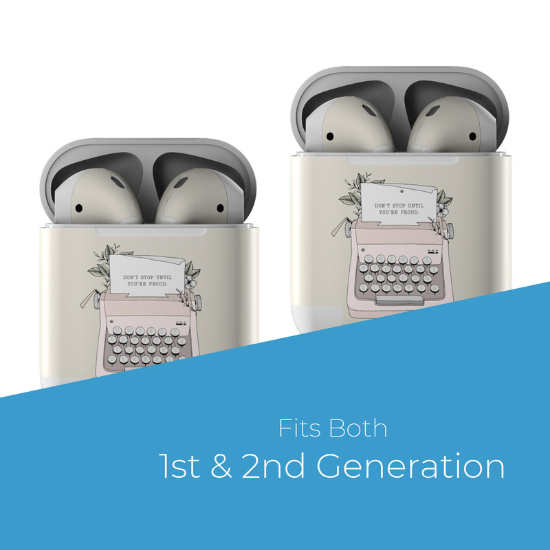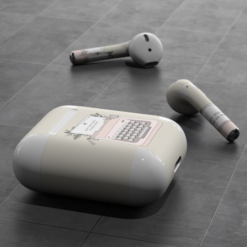 iStyles Apple AirPods Skin design of Typewriter, Office equipment, Space bar, Office supplies, Illustration, with black, white, pink colors, and tagged with objects, flowers, filigree, flower, flowers, pastel, sketch.