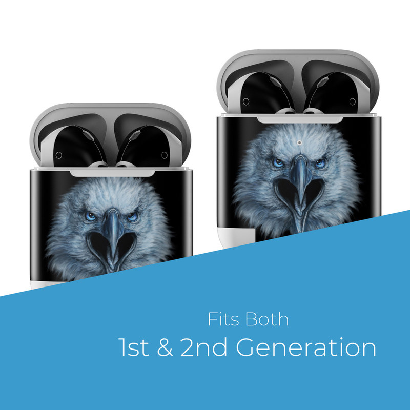 iStyles Apple AirPods Skin design of Bird, Vertebrate, Bird of prey, Beak, Eagle, Wildlife, Organ, Close-up, Eye, Accipitriformes, with white, gray, black, blue colors, and tagged with animals, bigfaces, bird, birds, eagle, eagles, headshot, nature, outdoors, wildlife.