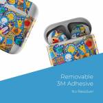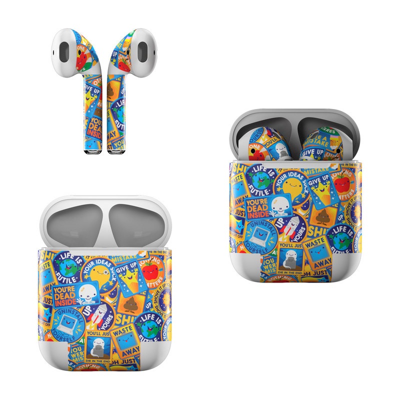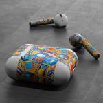 iStyles Apple AirPods Skin design of Pattern, Visual arts, Design, Art, Mosaic, Psychedelic art, with blue, yellow, orange, white, green, red, gray colors, and tagged with patterns, signs, space, objects, hearts, fuck, funny, humor.