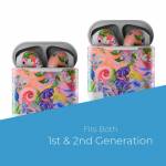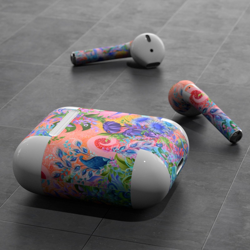 iStyles Apple AirPods Skin design of Psychedelic art, Painting, Art, Acrylic paint, Pattern, Modern art, Visual arts, Textile, Design, Organism, with gray, blue, green, pink colors, and tagged with patterns, nature, flowers.
