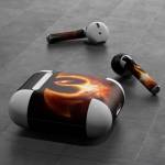 iStyles Apple AirPods Skin design of Light, Atmosphere, Orange, Space, Heat, Sky, Darkness, Art, Geological phenomenon, Universe, with black, red, green, pink colors, and tagged with flames, fantasy.