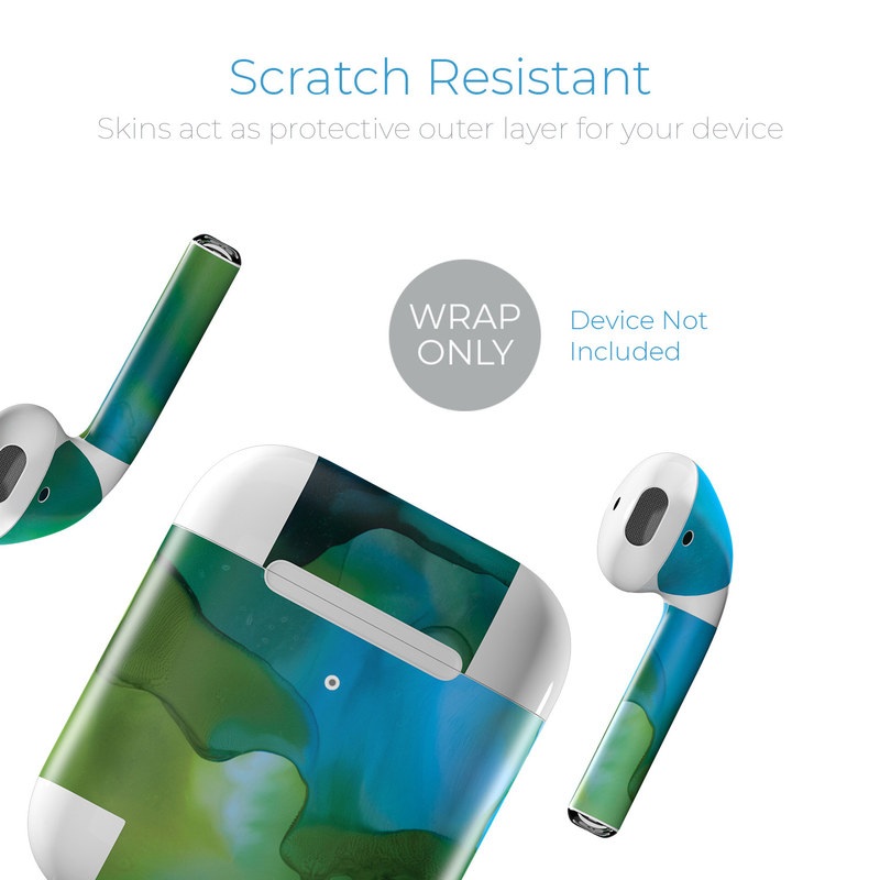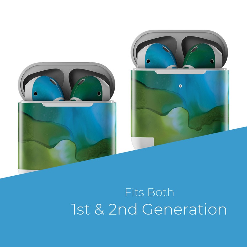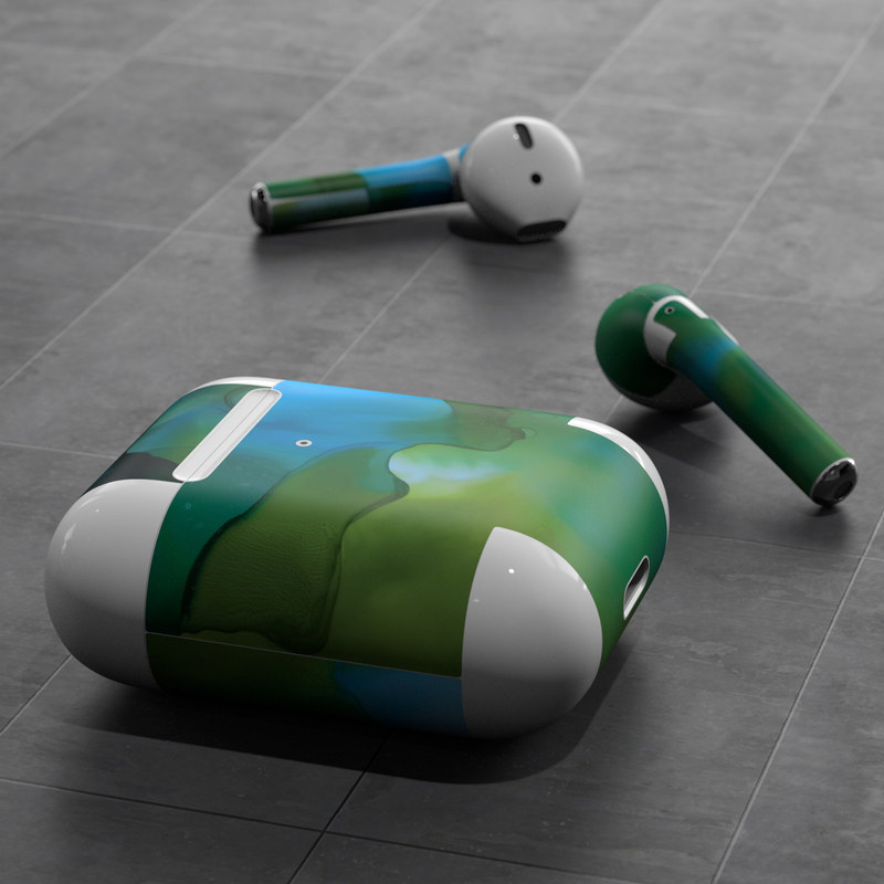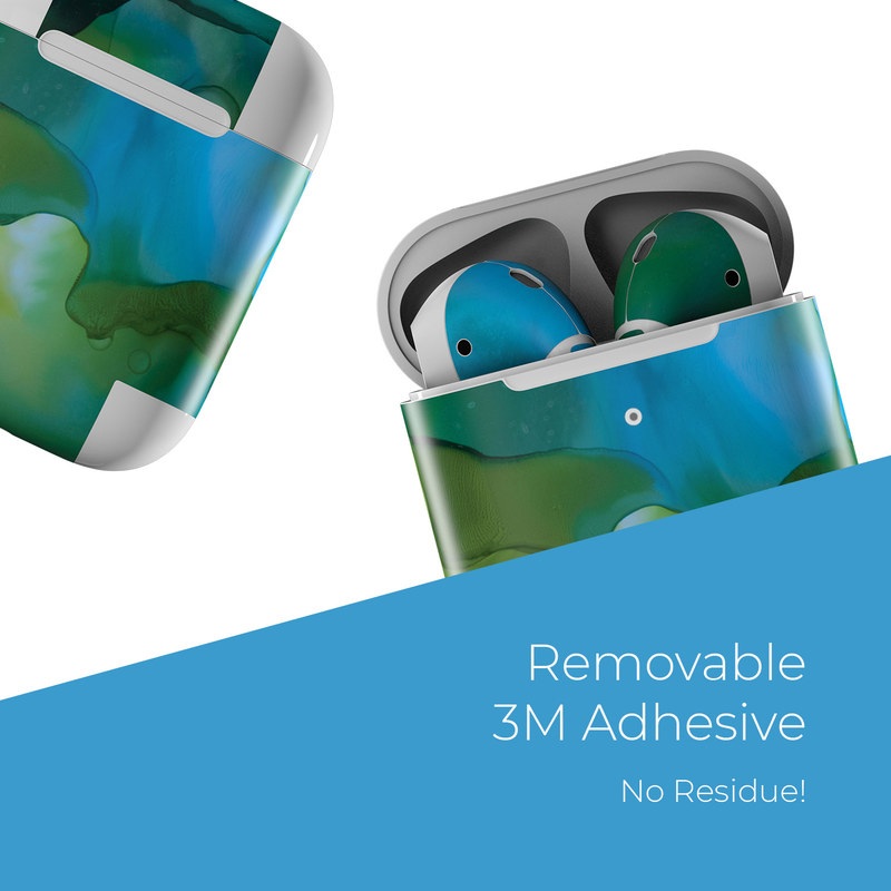 iStyles Apple AirPods Skin design of Aqua, Blue, Green, Painting, Turquoise, Teal, Water, Acrylic paint, Art, Organism, with blue, green colors, and tagged with abstract, abstract, blue, green, marble, marbled, watercolor.