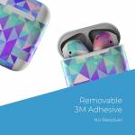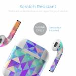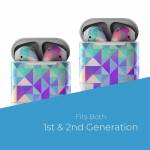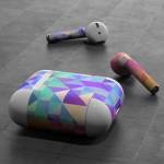 iStyles Apple AirPods Skin design of Pattern, Purple, Triangle, Violet, Magenta, Line, Design, Symmetry, Psychedelic art, with gray, purple, green, blue, pink colors, and tagged with patterns.