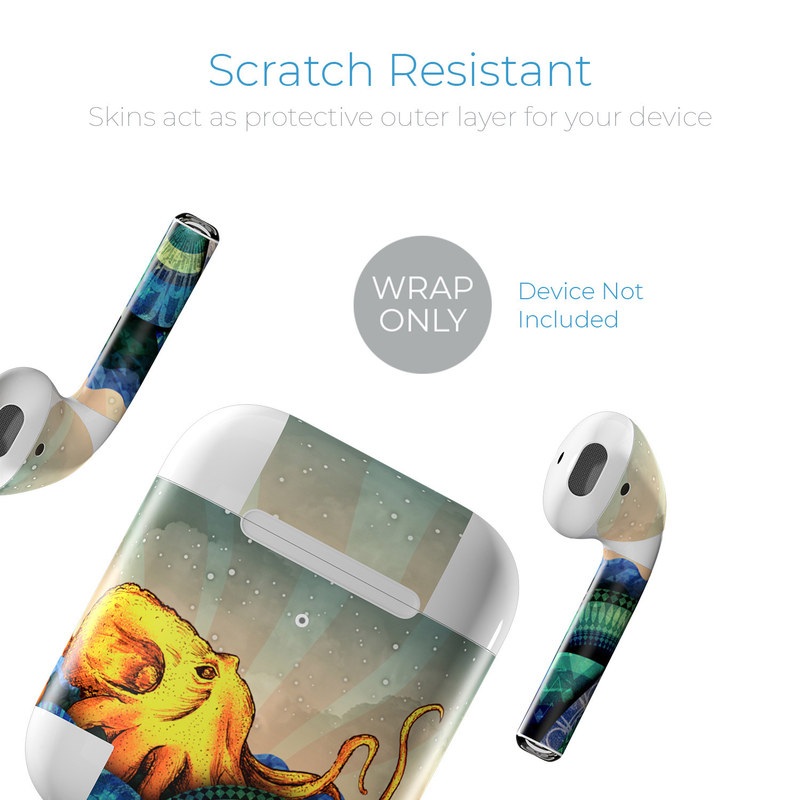 iStyles Apple AirPods Skin design of Illustration, Fractal art, Art, Cg artwork, Sky, Organism, Psychedelic art, Graphic design, Graphics, Octopus, with black, gray, blue, green, red colors, and tagged with animals, fantasy.