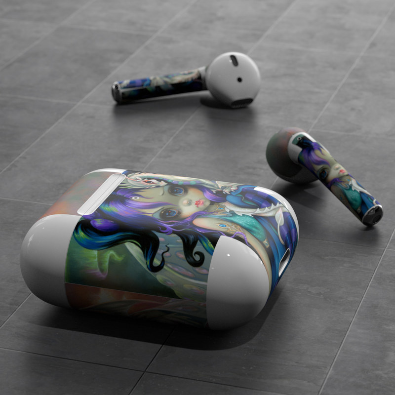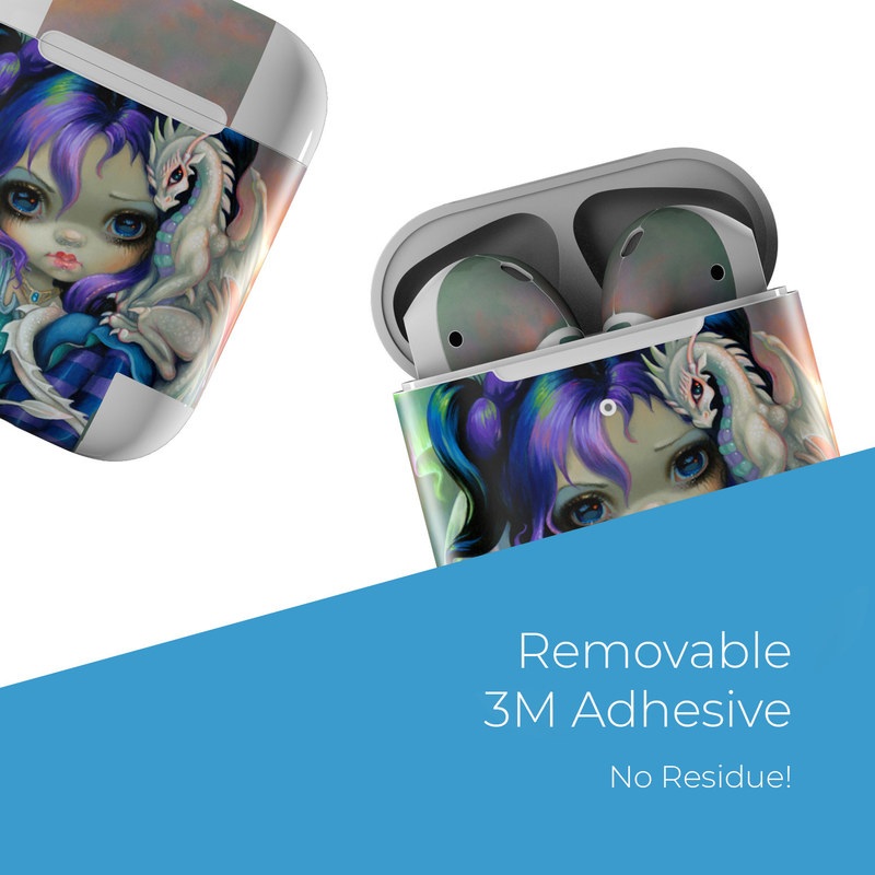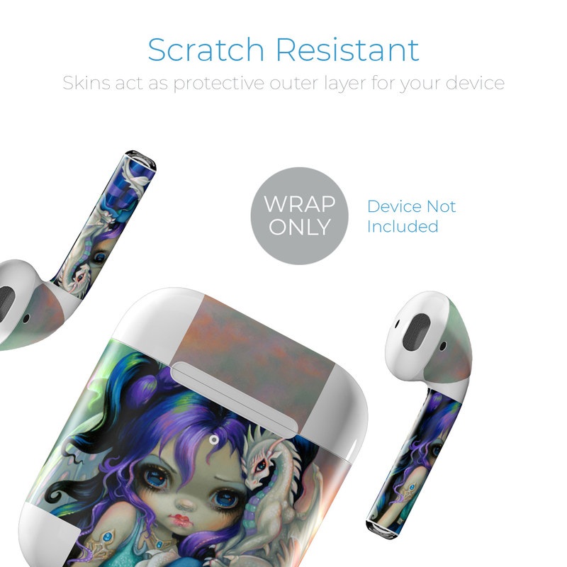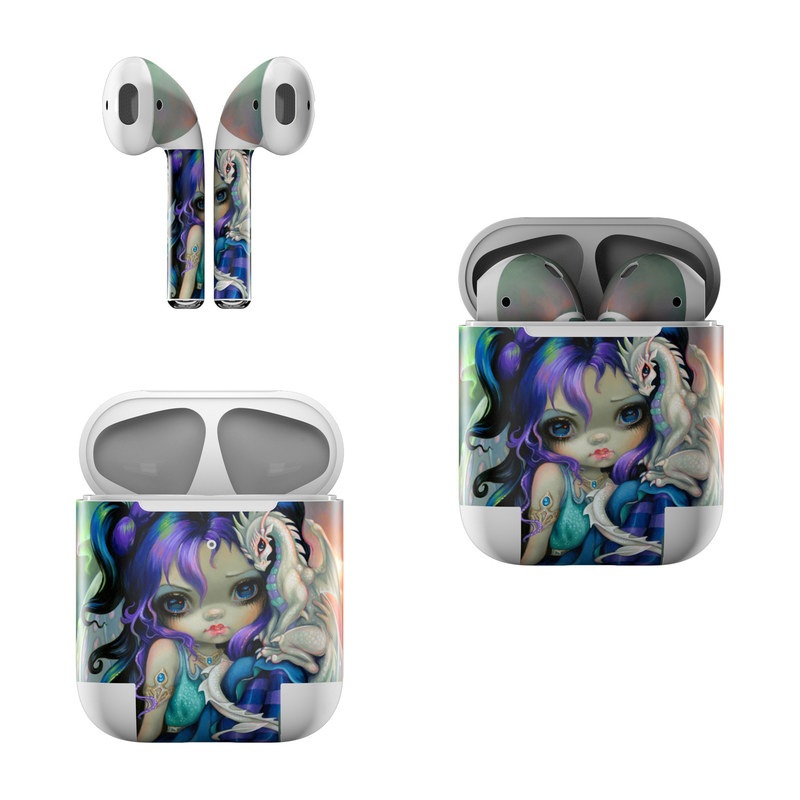 iStyles Apple AirPods Skin design of Illustration, Fictional character, Cg artwork, Art, Mythology, Anime, Mythical creature, with green, blue, purple, yellow, red, white colors, and tagged with people, fantasy, animals.