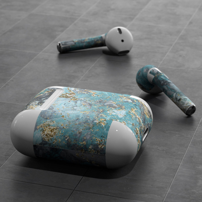 iStyles Apple AirPods Skin design of Blue, Turquoise, Green, Aqua, Teal, Geology, Rock, Painting, Pattern, with black, white, gray, green, blue colors, and tagged with patterns, lookslike, nature.
