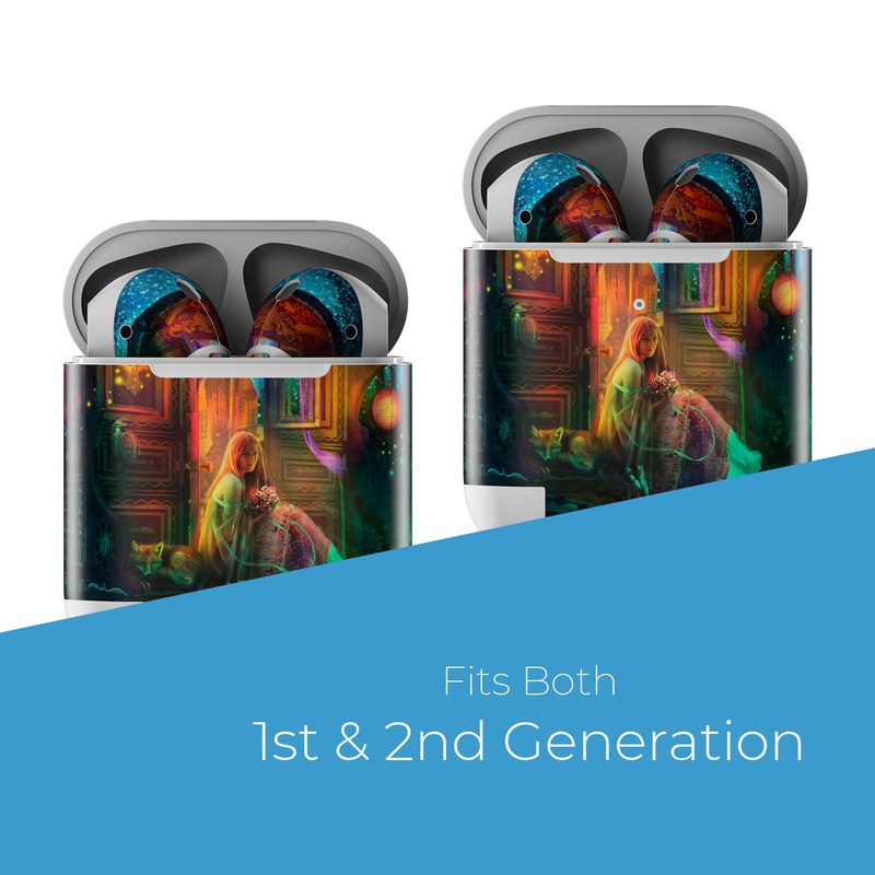 iStyles Apple AirPods Skin design of Illustration, Adventure game, Darkness, Art, Digital compositing, Fictional character, Games, with black, red, blue, green colors, and tagged with fineart, animals, objects, people, urban.
