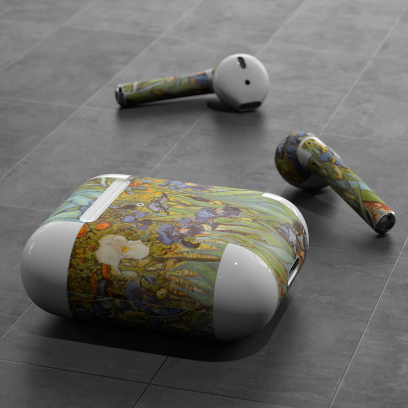 iStyles Apple AirPods Skin design of Painting, Plant, Art, Flower, Iris, Modern art, Perennial plant, with gray, green, black, red, blue colors, and tagged with fineart, flowers.